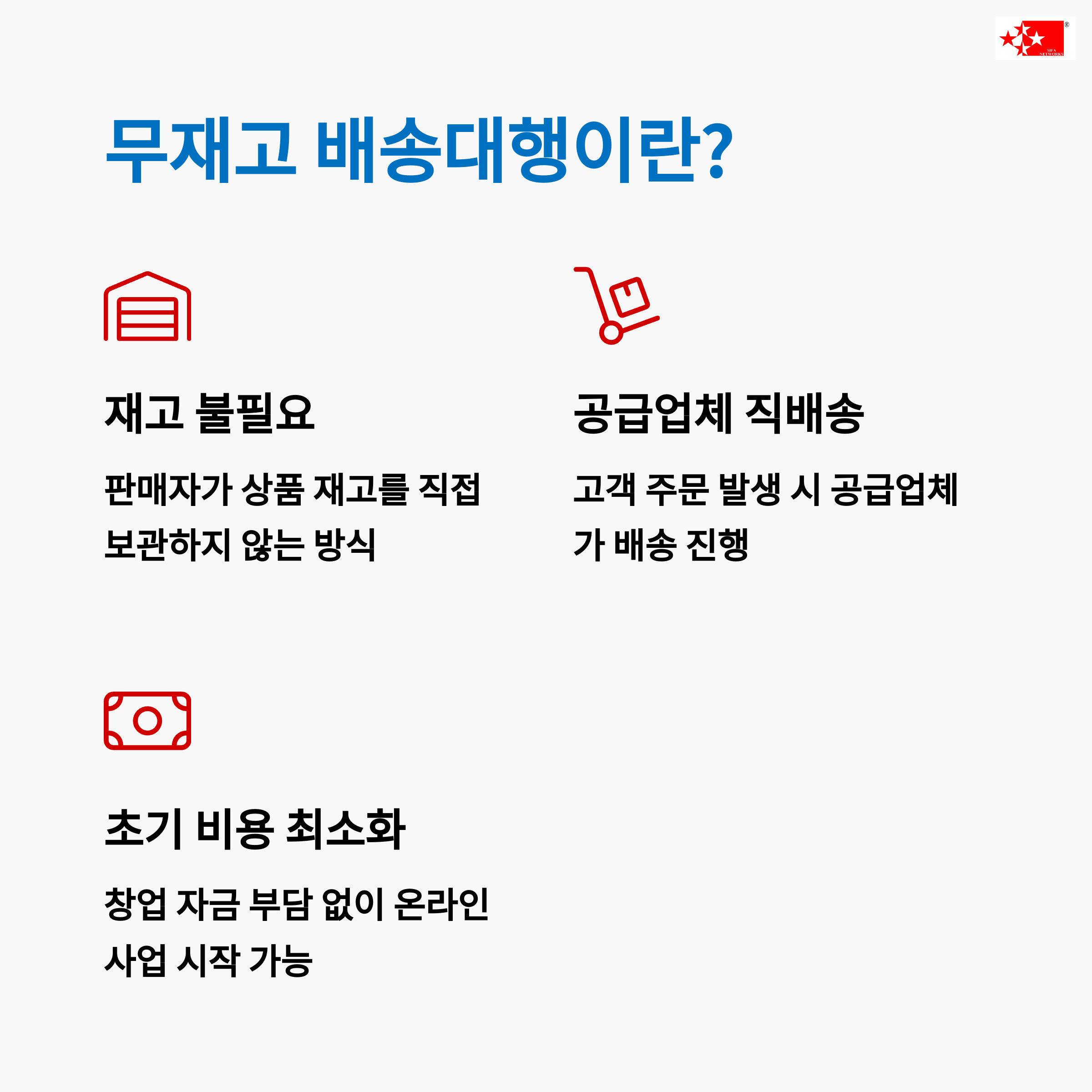 **무재고 배송대행(드롭쉬핑)**은 재고를 보유하지 않고