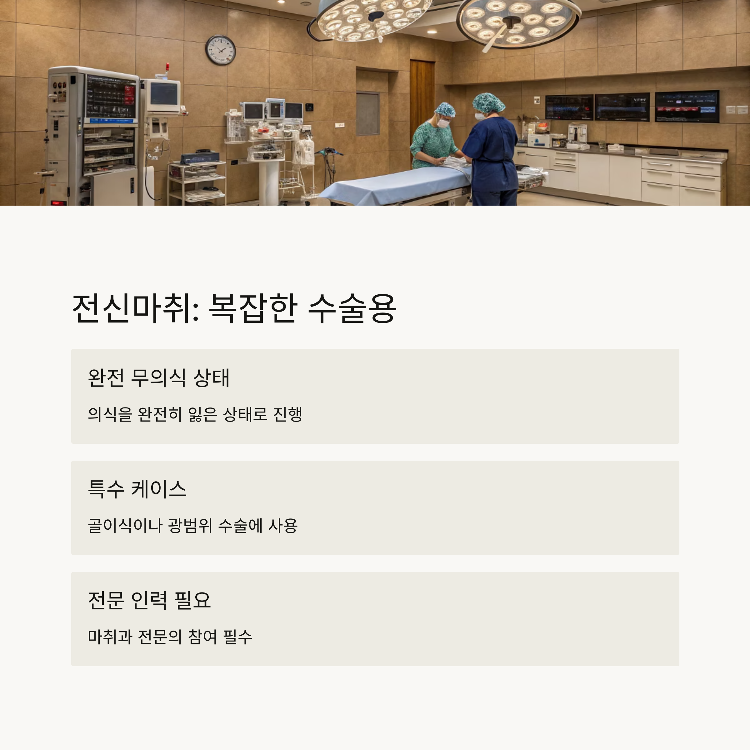 전신마취는 말 그대로 의식을 완전히 잃고 수술하는 상태예요.