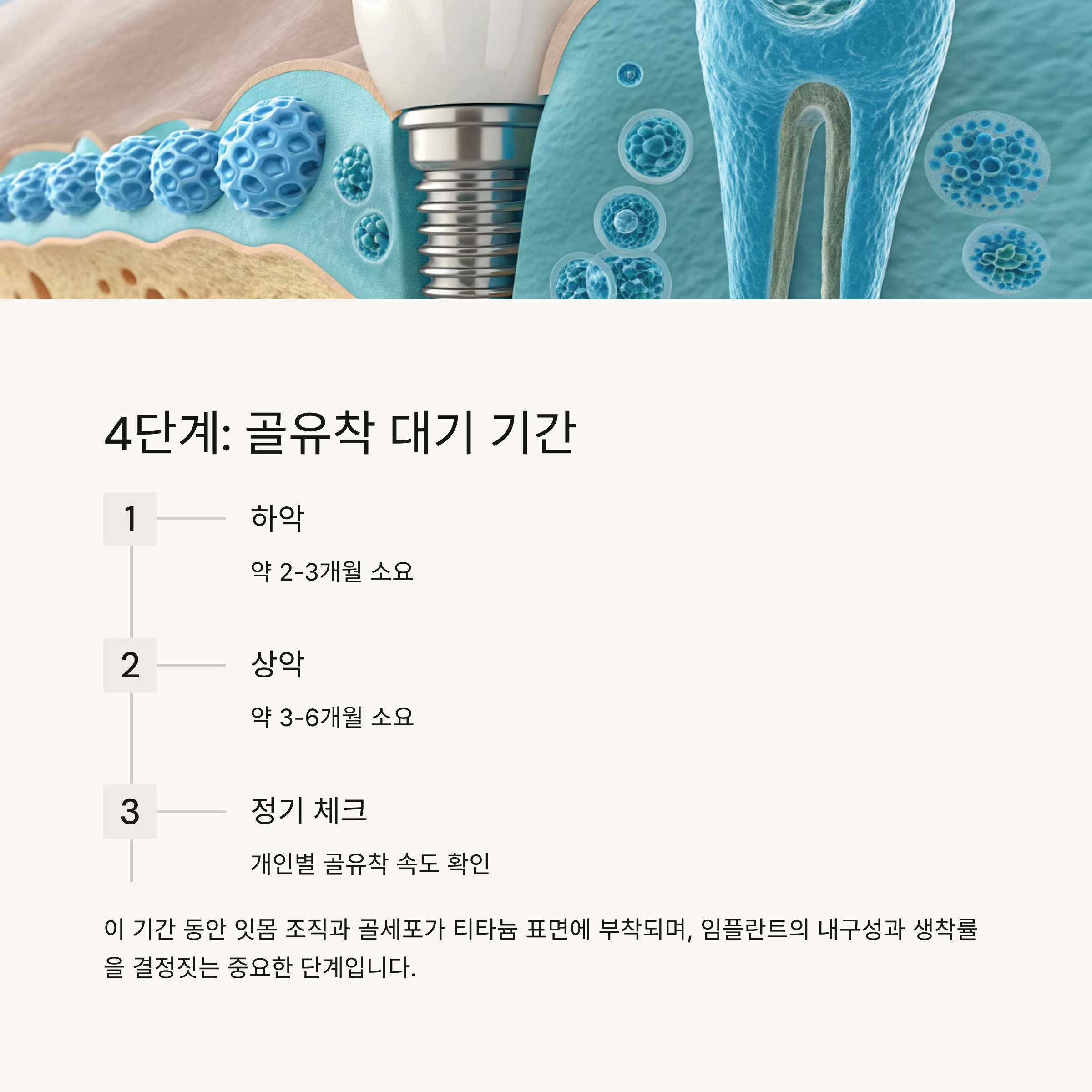 하악은 약 2~3개월, 상악은 3~6개월의 유착 기간이 필요합니다.