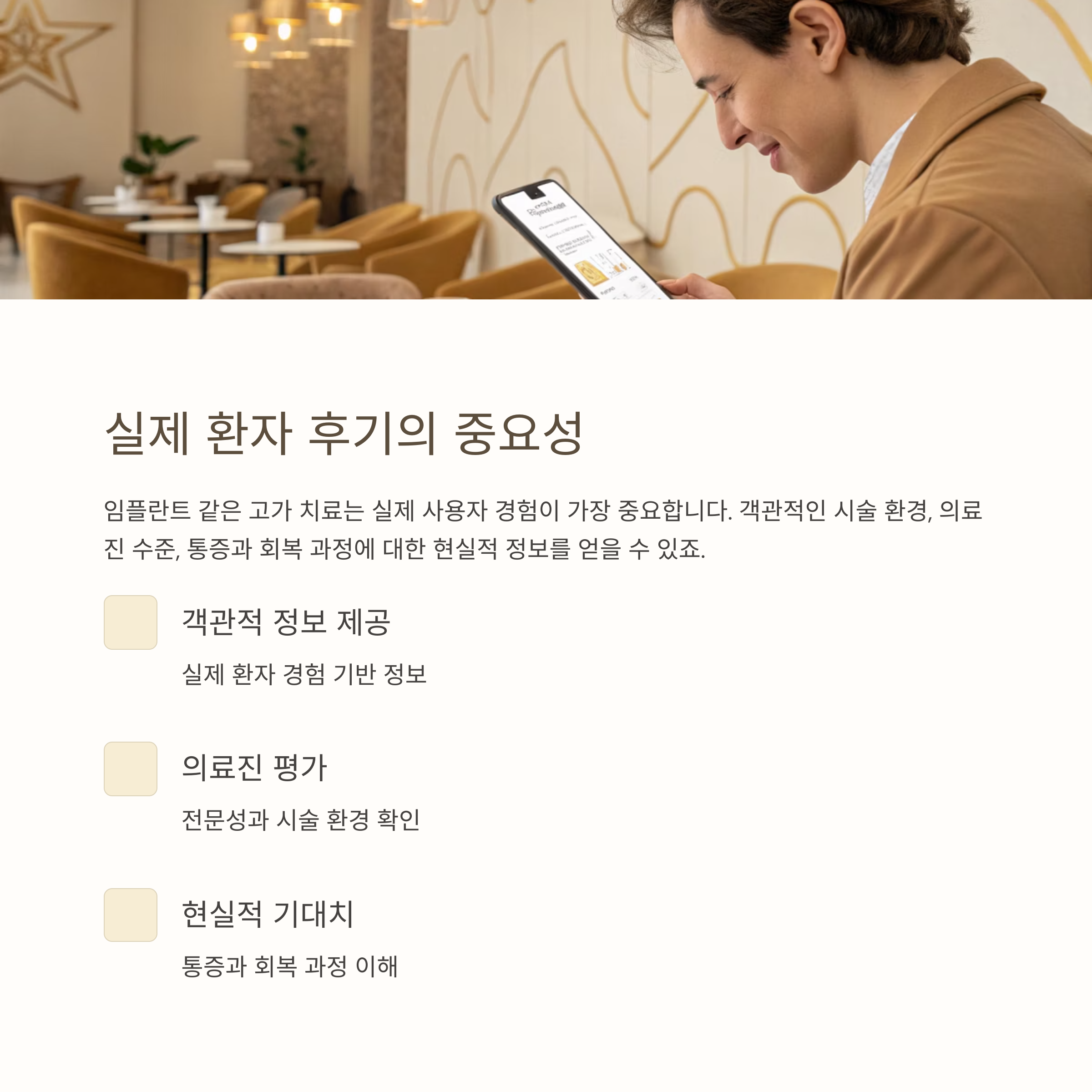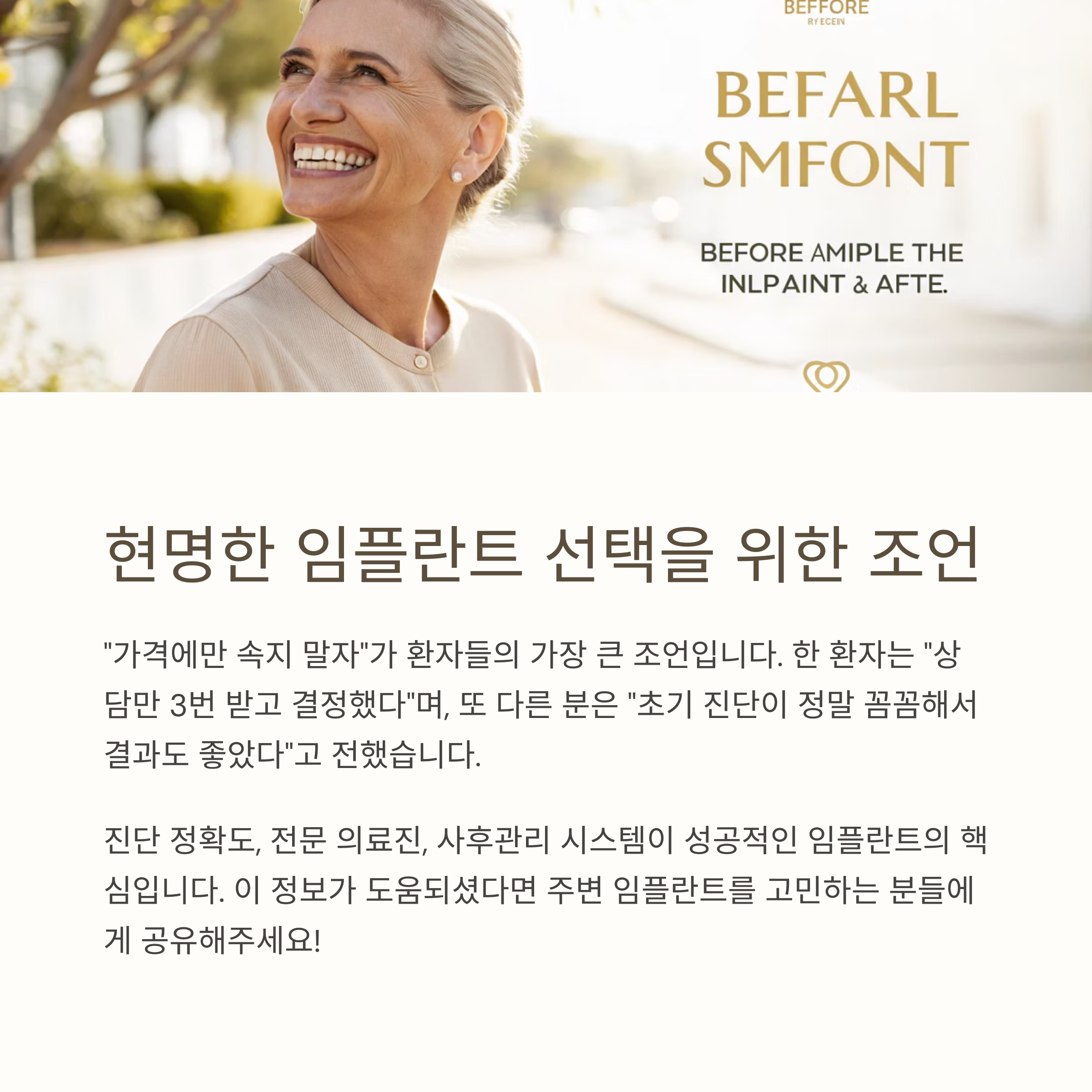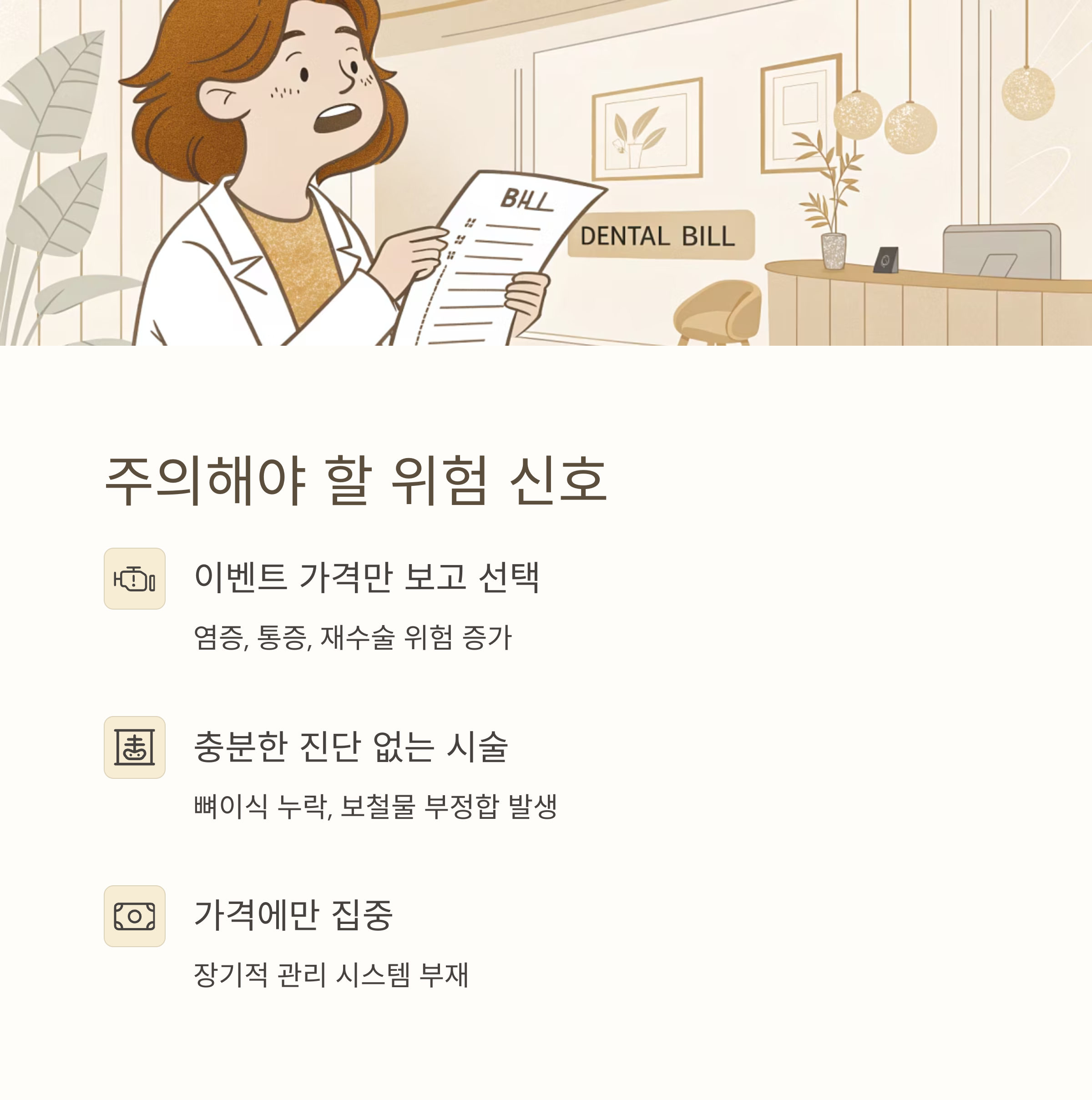 후기에서 환자들이 가장 많이 남긴 조언은 “가격에만 속지 말자”였습니다.