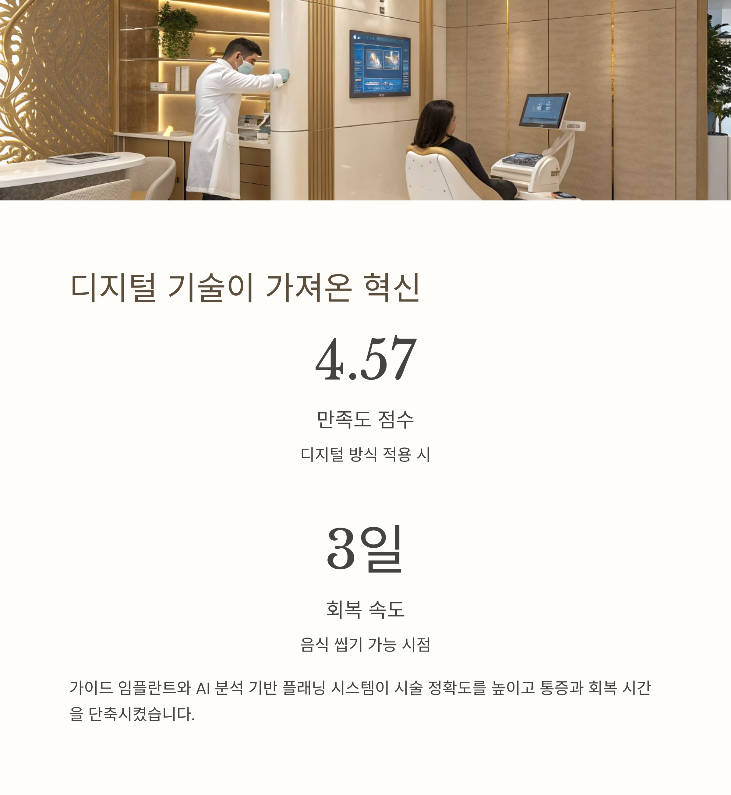 환자 만족도가 평균 4.57점으로 높았습니다. 특히 디지털 기법이 적용되면