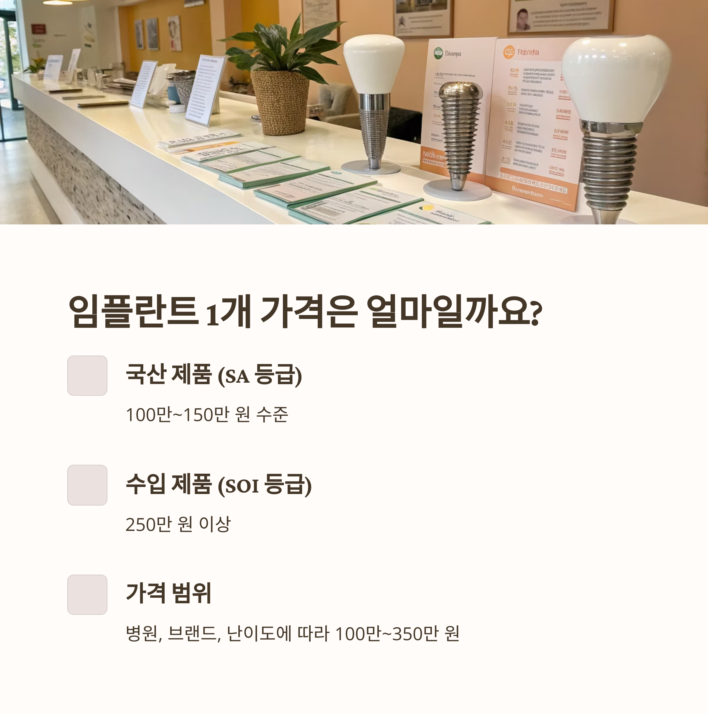 병원, 브랜드, 시술 난이도에 따라 임플란트 1개 가격은 100만~350만 원까지 다양합니다.