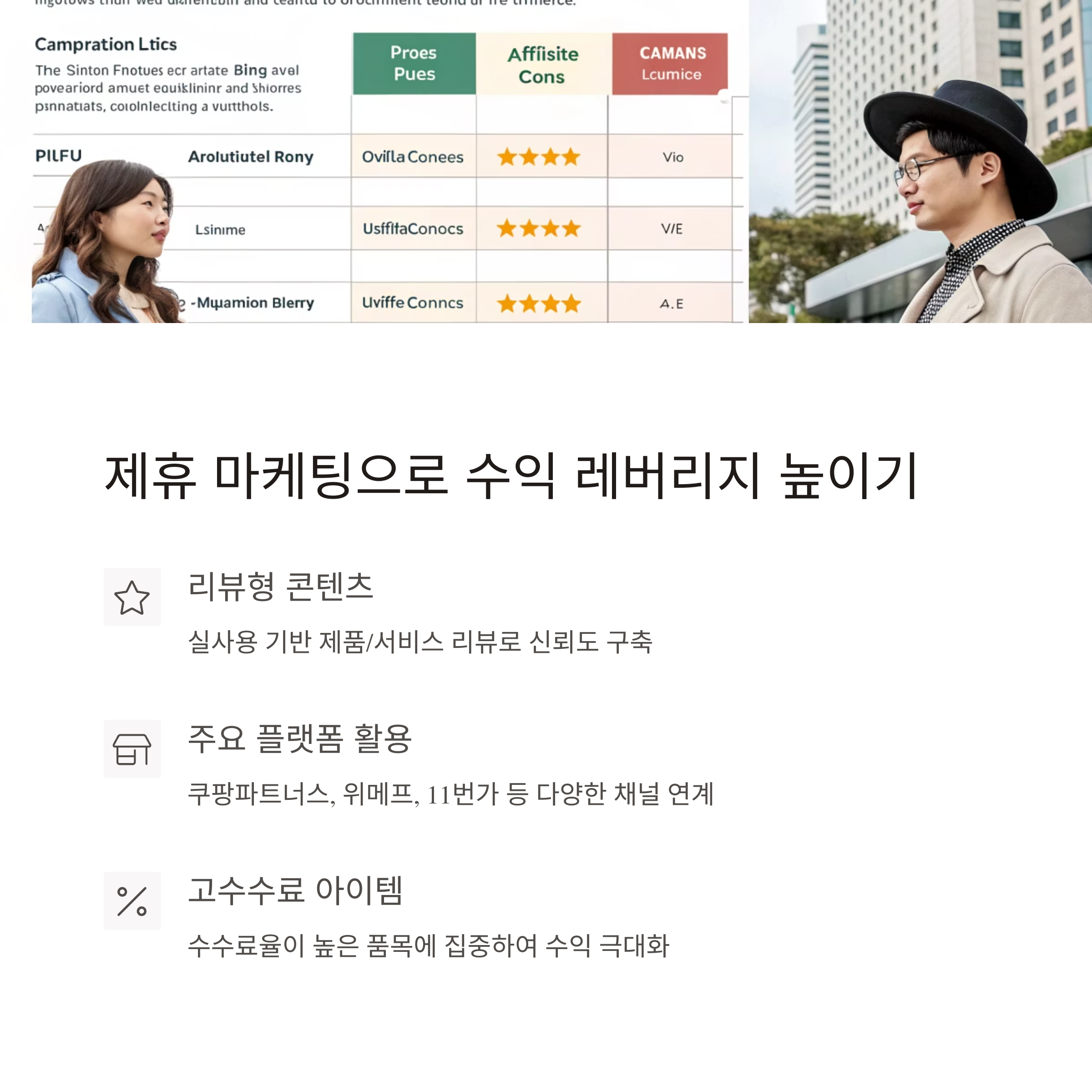 - 리뷰 콘텐츠, 비교 콘텐츠, 추천 리스트 활용