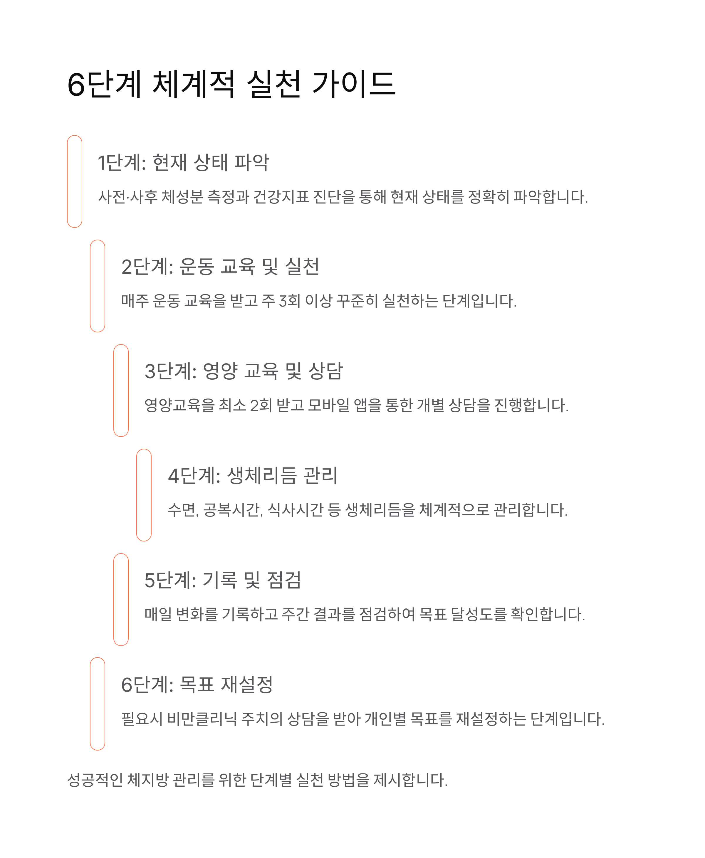 성공적인 체지방 관리를 위한 단계별 실천 방법을 제시합니다.