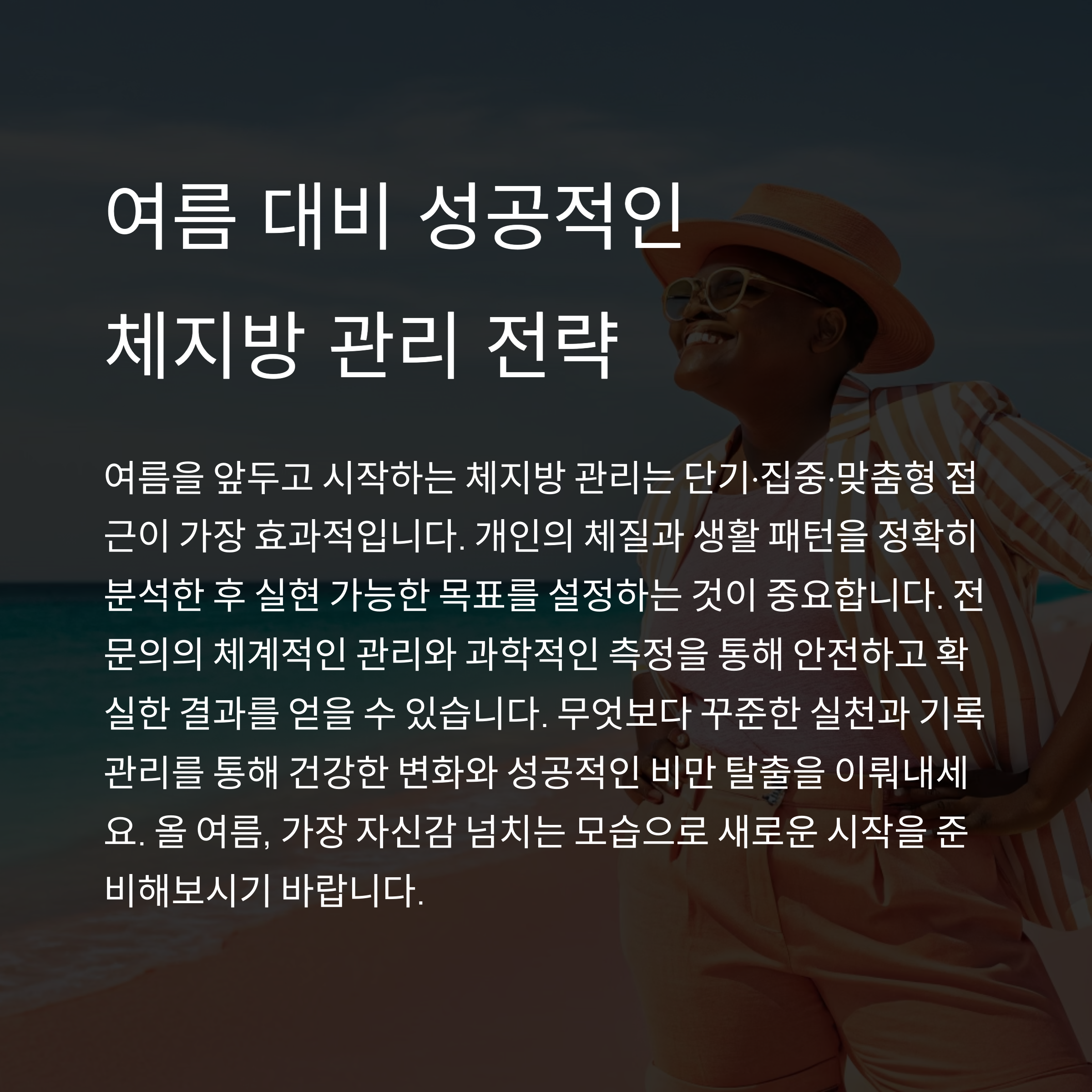 여름을 앞두고 시작하는 체지방 관리는 단기·집중·맞춤형 접근이 가장 효과적입니다.