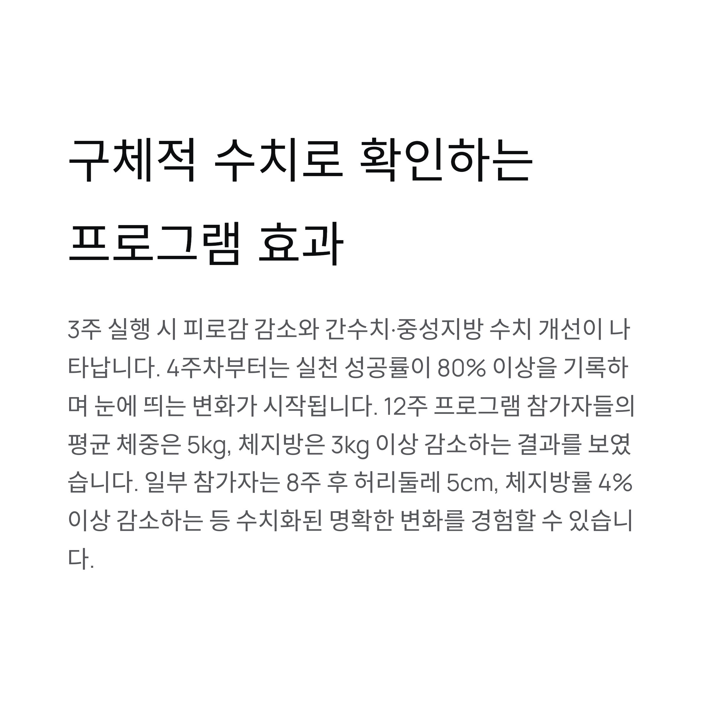 | 8주 표준 | 체질 개선 | 체지방 4-5kg 감소 |