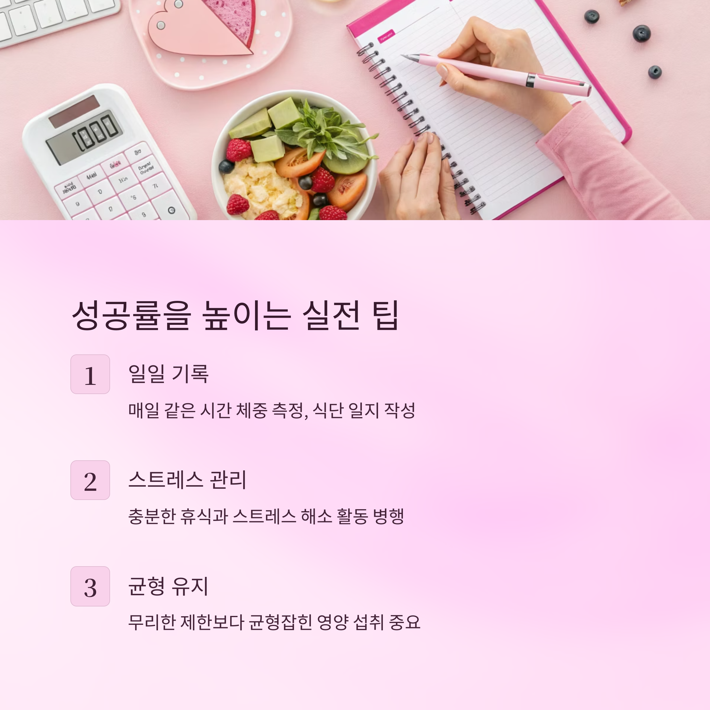 다이어트 성공의 비결은 꾸준함과 올바른 방법입니다.